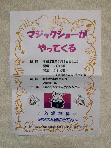 芸術体験ひろばマジック体験講師をドルフィンが行います(12:00~12:50)予約制