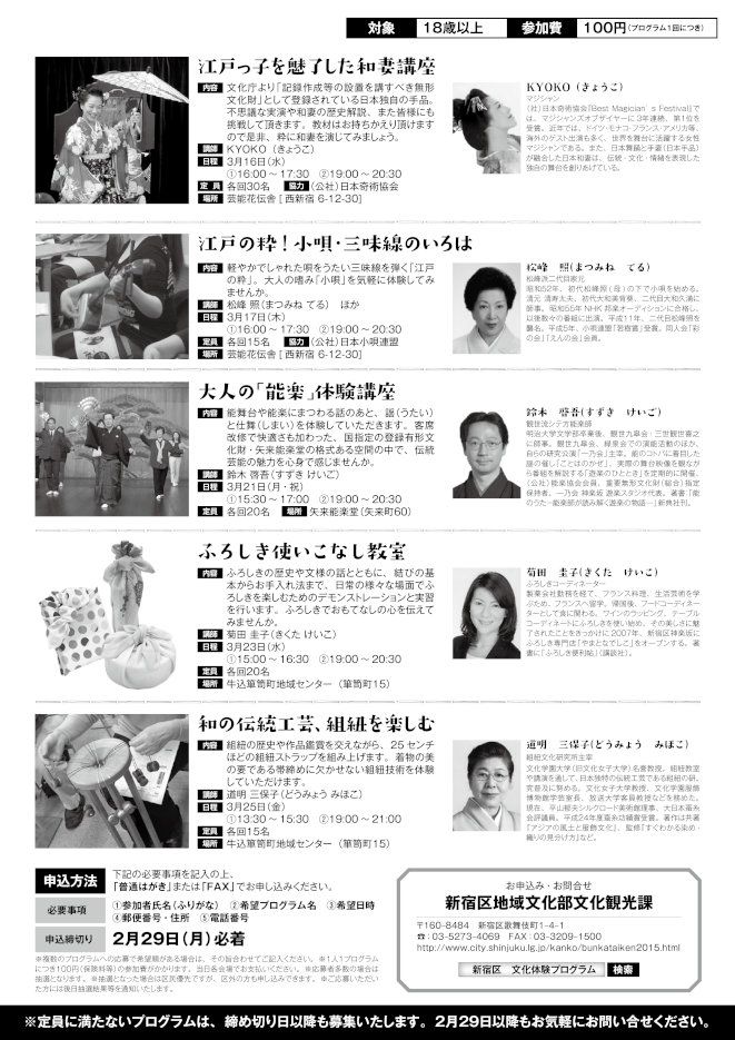 (落語・狂言・和妻・三味線・日本舞踊のうちAもしくはB各1プログラム申込可能)