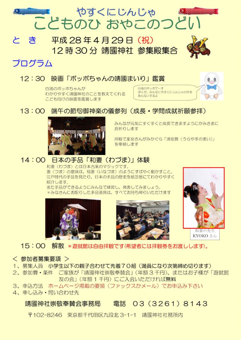 靖国神社[こどものひ おやこのつどい]和妻体験講師を務めます