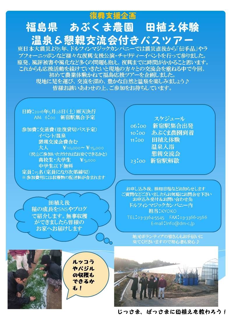 6:00集合出発⇒10:00福島農場着 田植え開始11:00~15:00