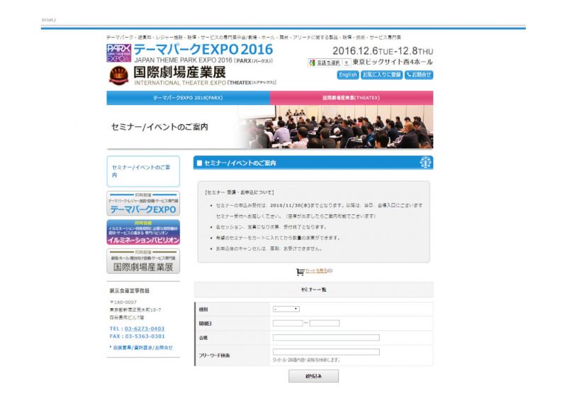 セミナーの申込み受付は、2016/11/30(水)までとなります。以降は、当日、会場入口にございますセミナー受付へお越しください。(空席が出ましたらご案内可能でございます)