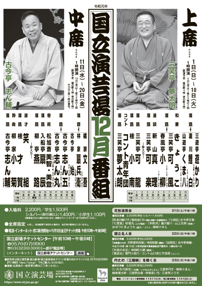 なお、最新の情報は下記の国立劇場チケットセンターへお問い合わせください。