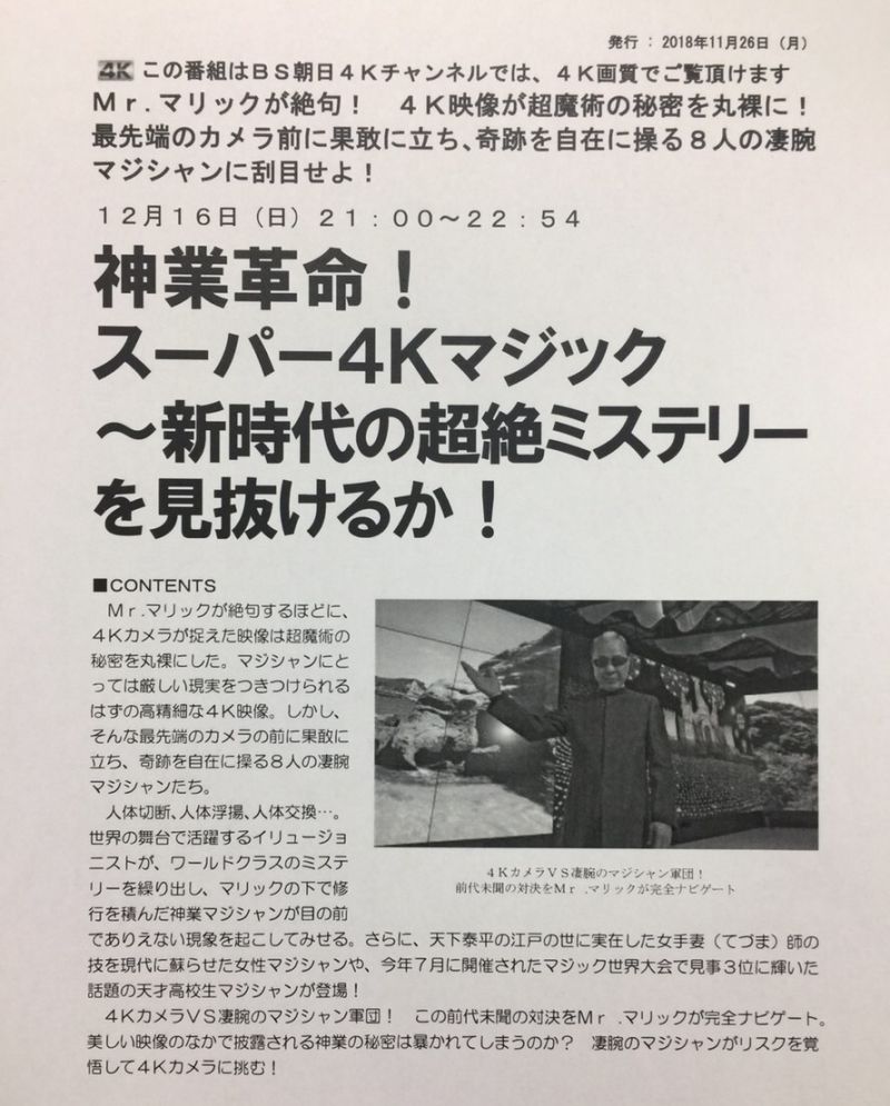また、上記の放送は、緊急報道などにより、予定が変更になる可能性もございます。